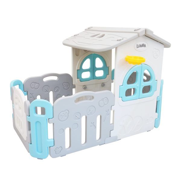 Selain multifungsi Playhouse Fence ini juga sangat unik, memiliki bentuk rumah-rumahan lengkap dengan atap, jendela dan meja juga ring + basketball loh. Jadi ketika sikecil beranjak balita / kakaknya bisa bermain rumah-rumahan ataupun juga bermain basket, seruuuuuu banget dan long investment banget ‘kan moms.